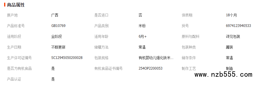 有机婴幼儿强化钙铁锌米粉225g宝宝营养水果肉蔬米粉