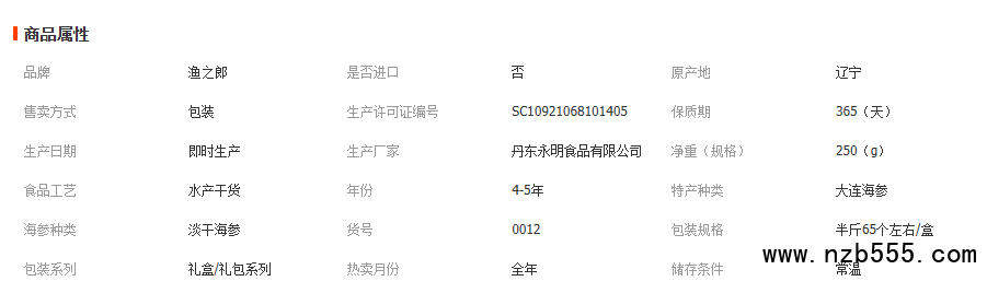 渔之郎淡干海参 海参礼盒半斤65个左右 厂家