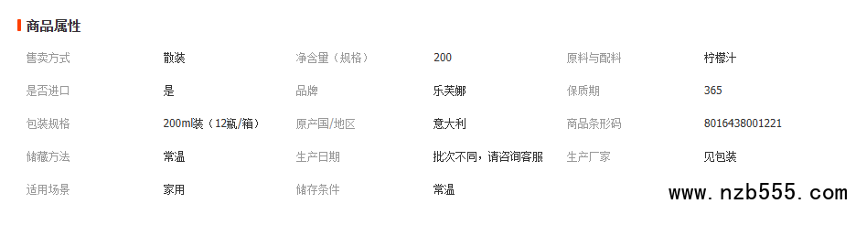 乐芙娜西西里黄柠檬汁 浓缩原汁蛋糕烘焙原料 原装200ml烘焙原料