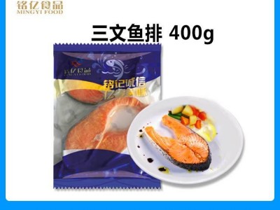 铭亿冷冻水产三文鱼排400g餐厅酒店供应厂家批发海鲜智利进口