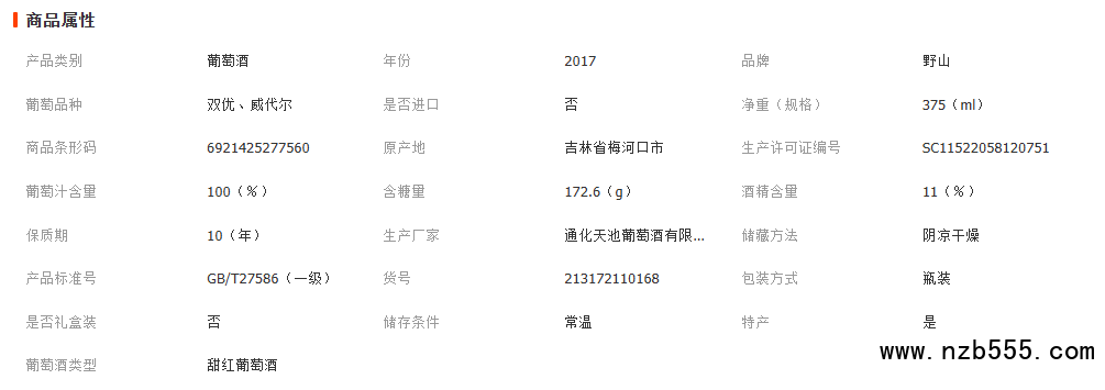 冰红葡萄酒红酒五星野山冰红葡萄酒375ml通化特产葡萄酒批发