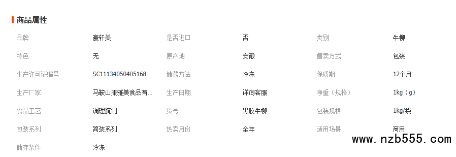 黑椒牛柳1kg半成品食材火锅烧烤冷冻酒店生鲜调理商用牛肉烤肉