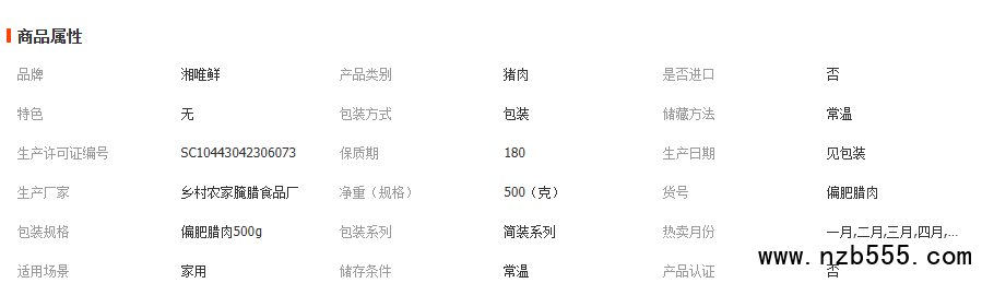 厂家直供偏肥腊肉500g