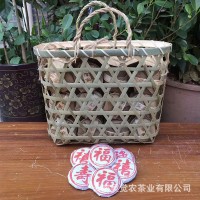 厂家批发 竹箩装迷你小茶饼 普洱生茶勐海味七子饼672克